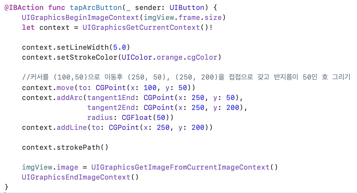 ํธ ๊ทธ๋ฆฌ๊ธฐ๋ ์ปค์๋ฅผ ์ด๋ ํ, addArc ํจ์๋ฅผ ์ฌ์ฉํด 2๊ฐ์ ์ ์ ์ ์์น์ ๋ฐ์ง๋ฆ์ ์ค์ ํ๋ค.