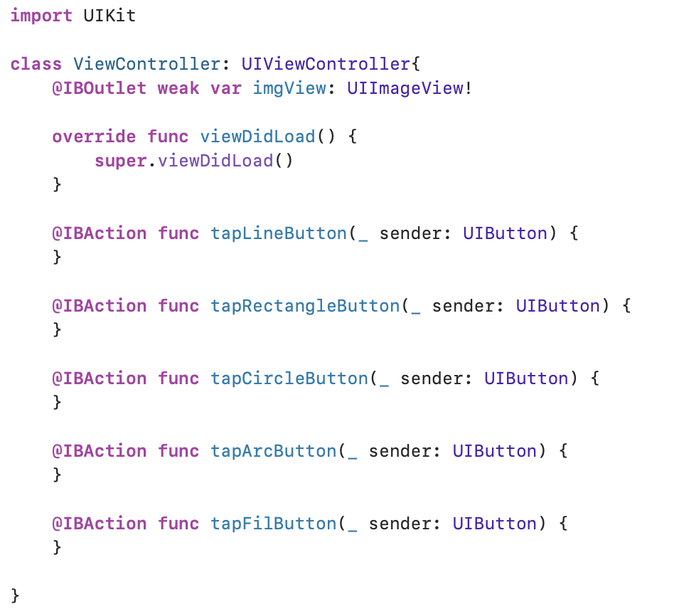 image View์ ๋ํ ์์๋ ๋ณ์์, ๋ฒํผ 4๊ฐ์ ๋ํ ์ก์ ํจ์๋ฅผ ์ถ๊ฐํ๋ค.