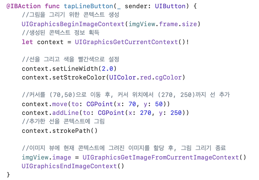 ์ปค์๋ฅผ (70, 50)์ผ๋ก ์ด๋ ํ, ์ปค์ ๋ถํฐ (270, 250)๊น์ง ์ ์ ์์ฑํ๋ค. ์์ฑํ ์ ์ ์ฝํ ์คํธ์ ๊ทธ๋ ค์ค๋ค.
