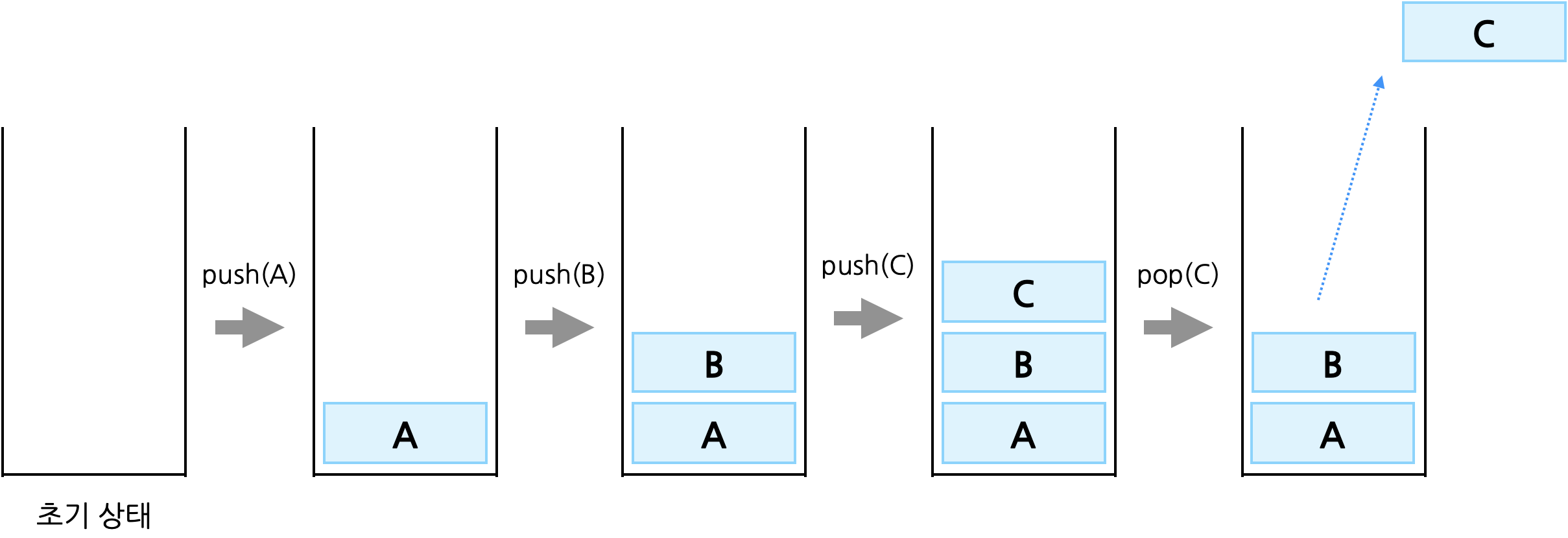 - νμͺ½ λμμλ§ μλ£λ₯Ό λ£κ³  λΊ μ μλ LIFO(Last In First Out) νμμ μλ£ κ΅¬μ‘°