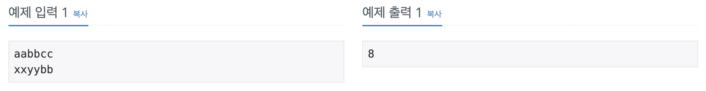- ์ต์ข ์ ์ผ๋ก res์ ๋ ๋ฒ์งธ ๋ฌธ์์ด์ ๊ฐ์๋ฅผ ๋ํ ํ ๋ฐํํ๋ค.