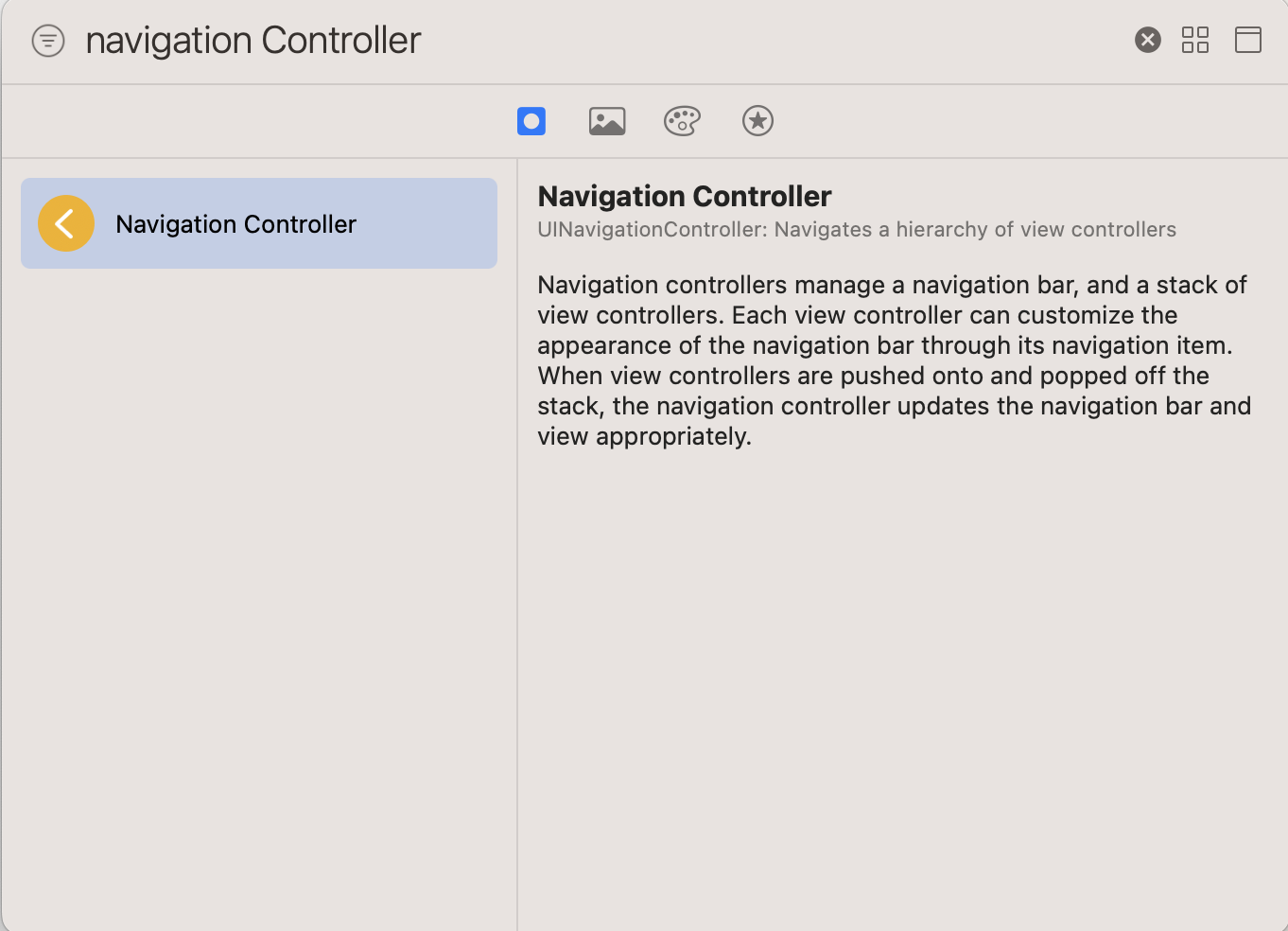 - 계층적 내용을 탐색하기 위한 스택 기반 체계를 정의하는 컨테이너 뷰 컨트롤러