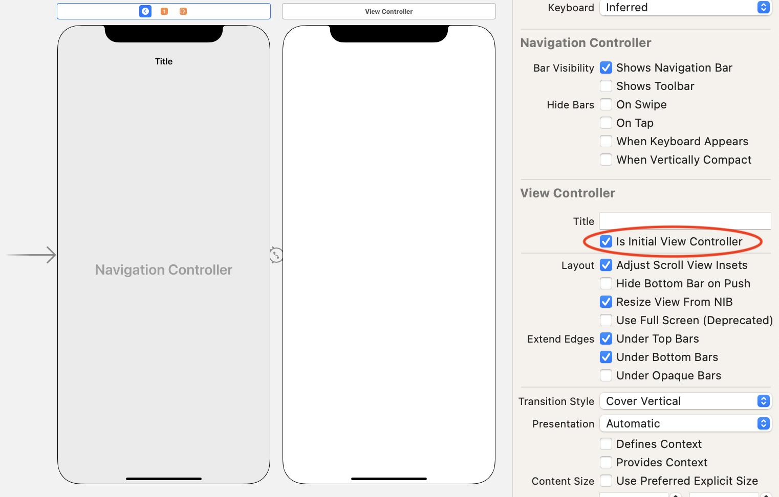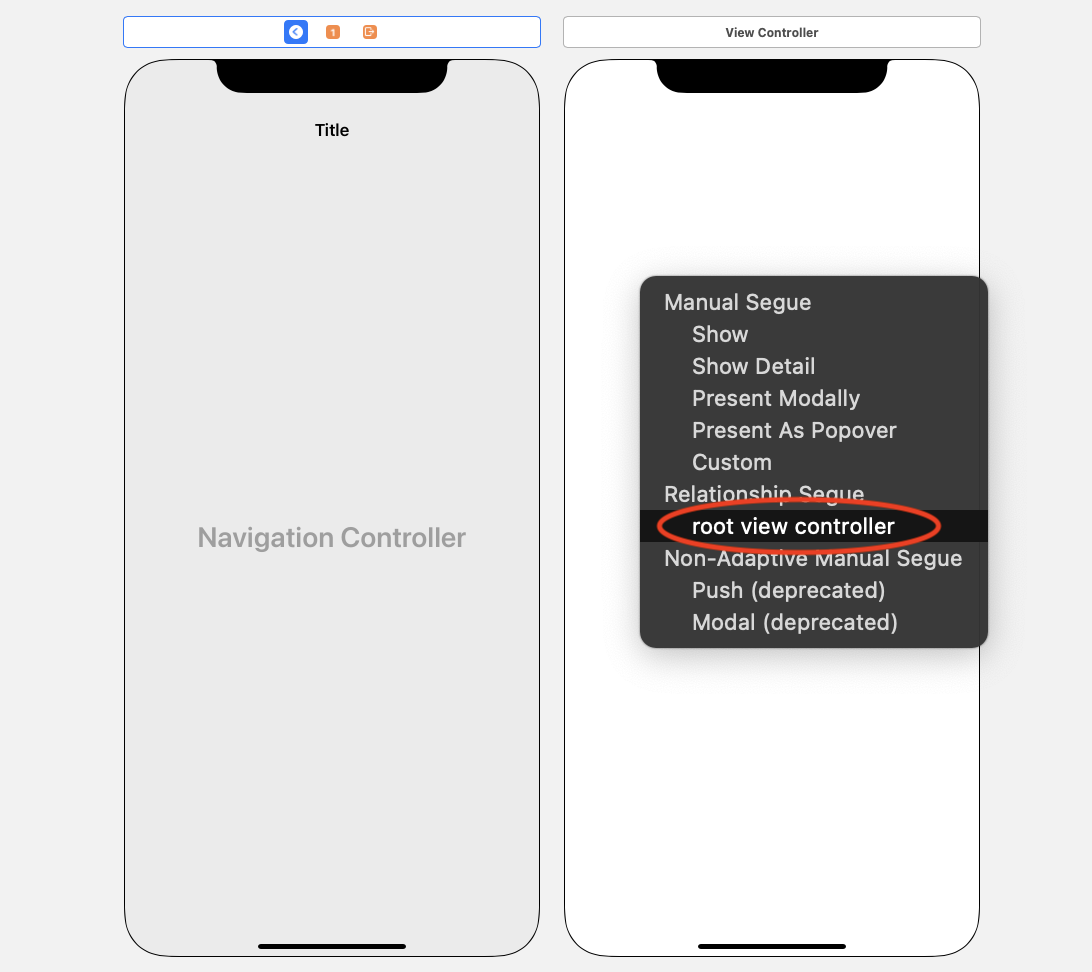 Navigation Controller를 initial View로 설정