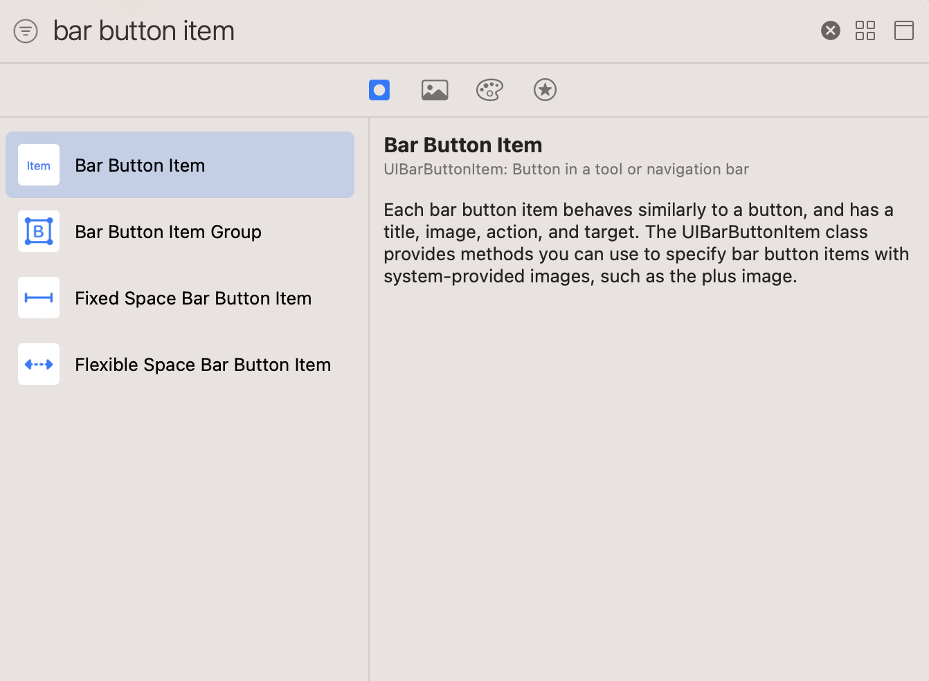 Navigation Bar의 title을 설정한 후, Library에서 Bar Button Item을 찾아 Navigation Bar의 오른쪽에 추가