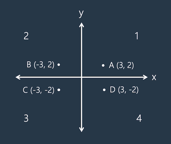 - x ์ขํ๊ฐ ์์, y ์ขํ๊ฐ ์์์ด๋ฉด ์ 2์ฌ๋ถ๋ฉด์ ์ํฉ๋๋ค.