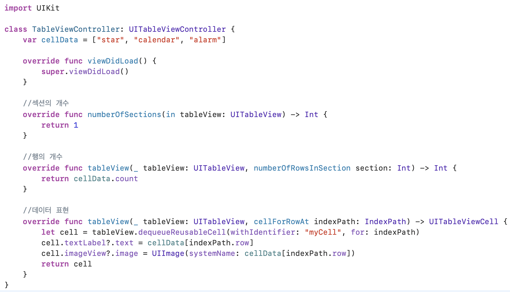 Table View์ ํ์ํ ๋ฐ์ดํฐ๋ฅผ ๋ด์ cellData ๋ฐฐ์ด ์ ์ธ